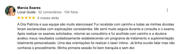 Aqui, a excelência no atendimento é aliada a tratamentos modernos e personalizados, sempre com o objetivo de proporcionar mais disposição, confiança e qualidade de vida para nossas pacientes. A Drª Patricia Magier, com sua vasta experiência e constante atualização profissional, lidera a clínica com o compromisso de devolver à mulher sua melhor versão, com saúde e bem-estar.